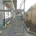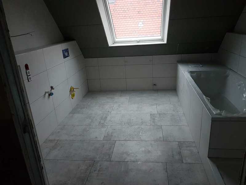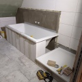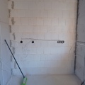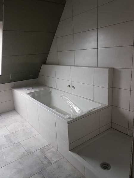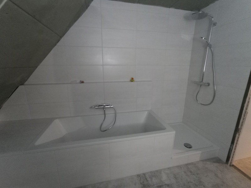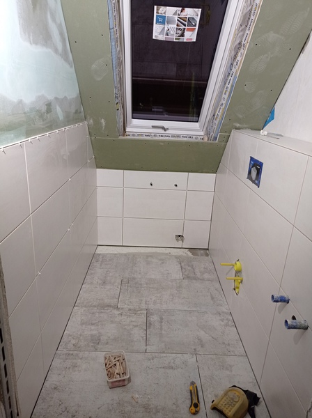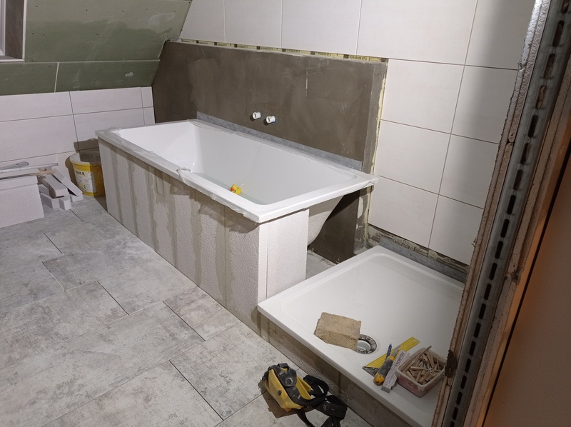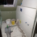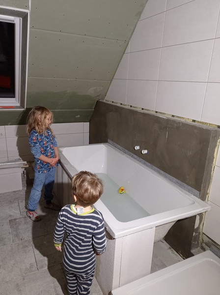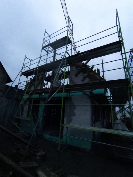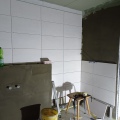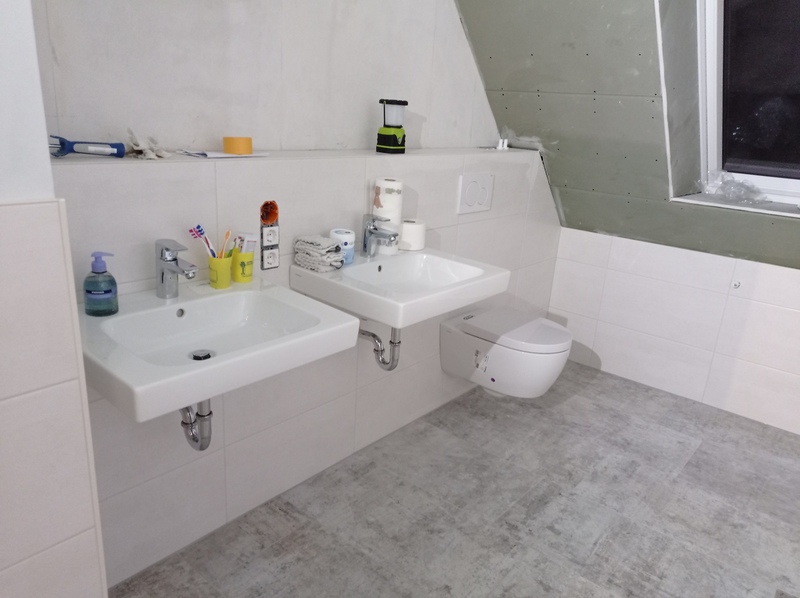 Die ersten Fliesen im Bad und der Anbau wird eingerüstet, Stand bis 02.12.21