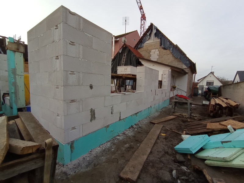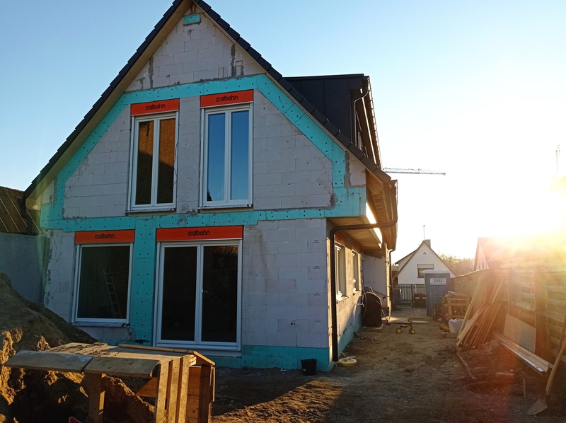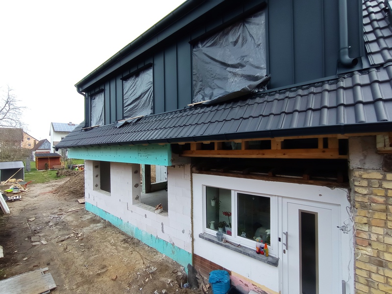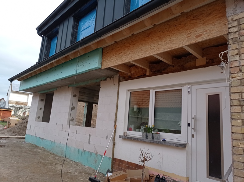 Die ersten neuen Fenster, Anbau und OG Stand 12.12.21