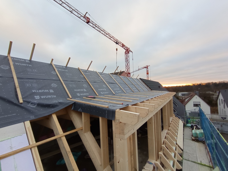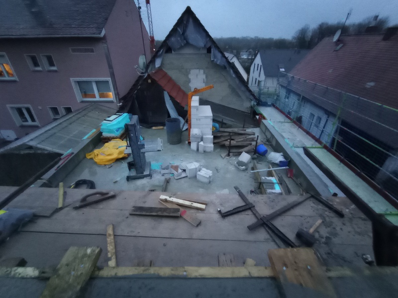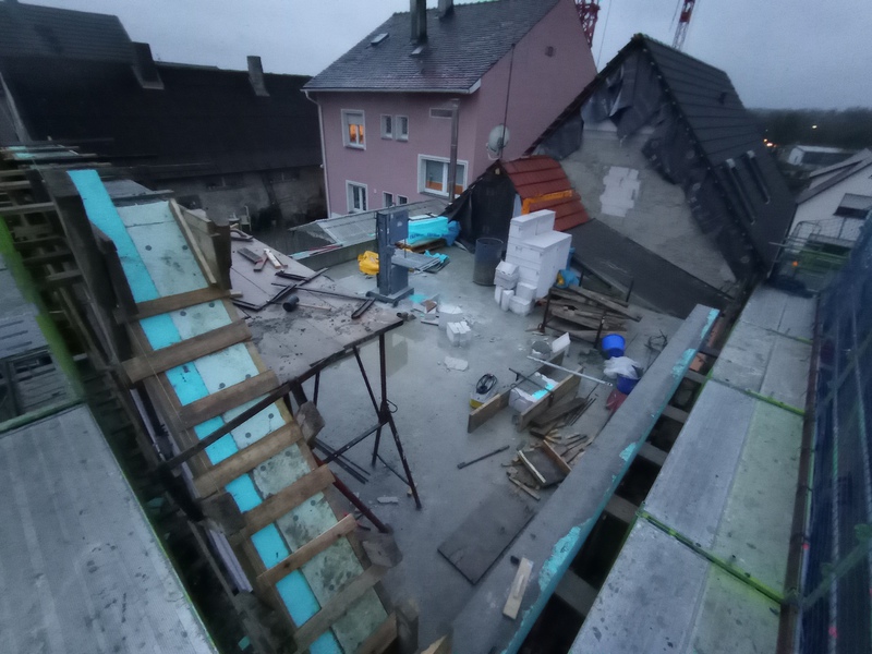 Das neue Dach kommt und das Bad nimmt Form an, Stand bis 09.12.21