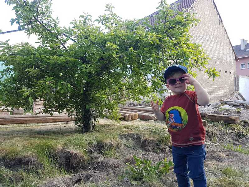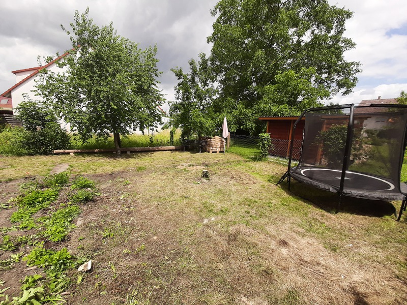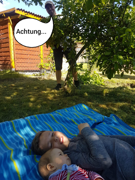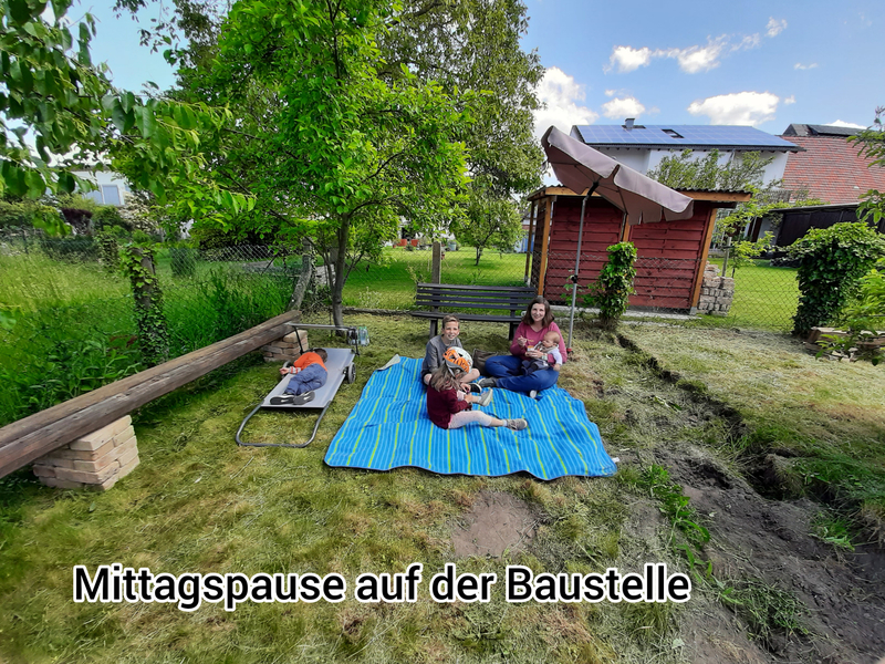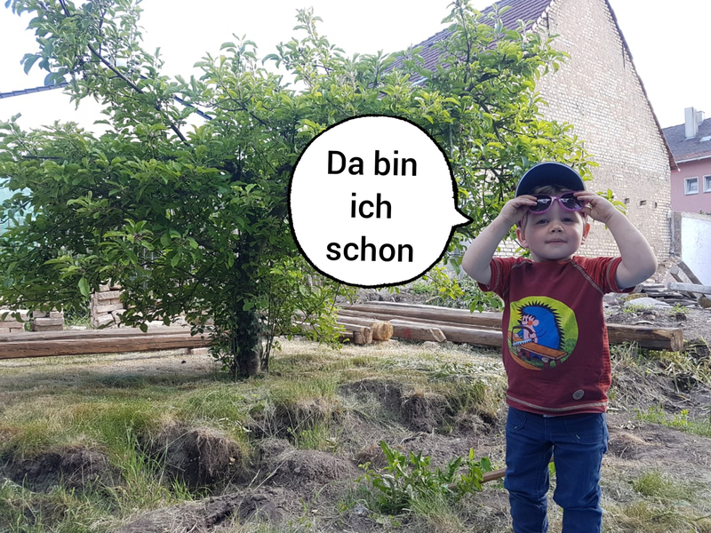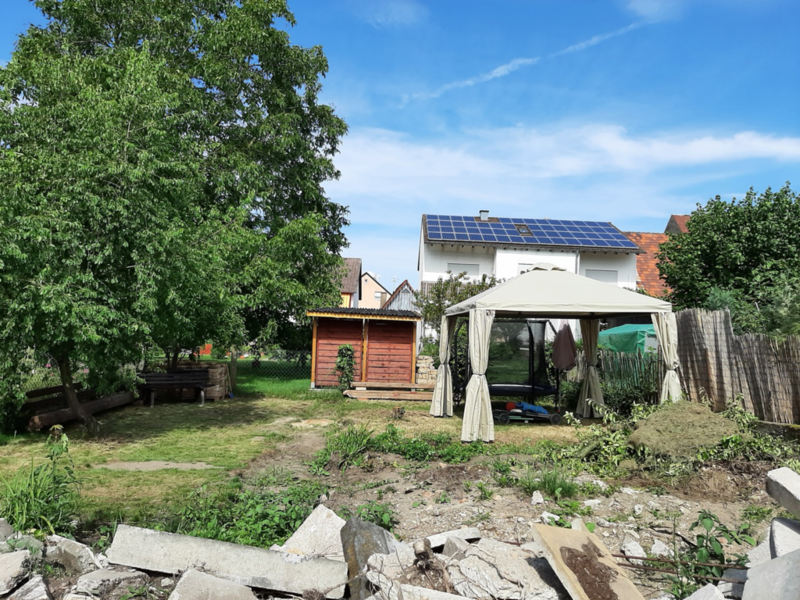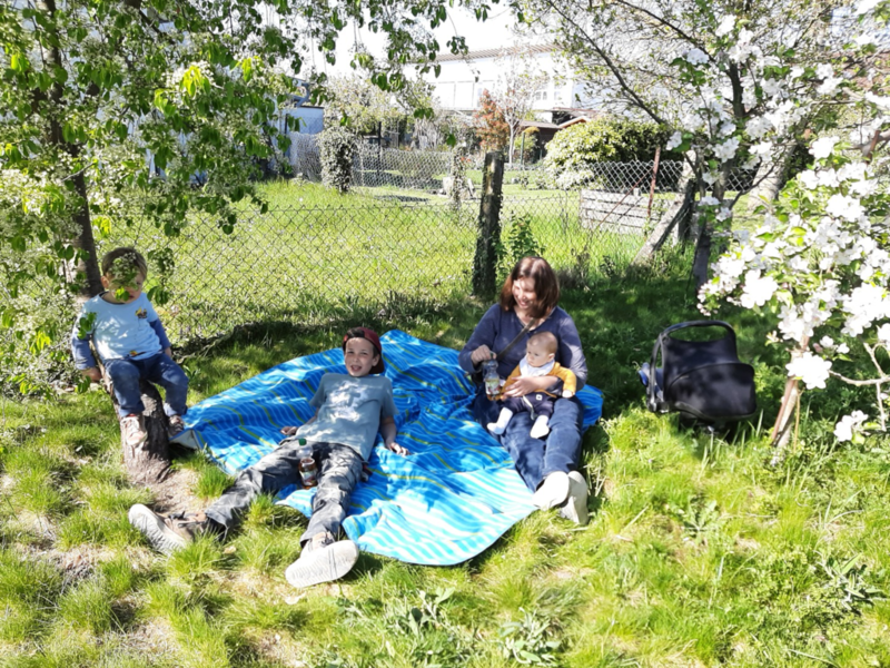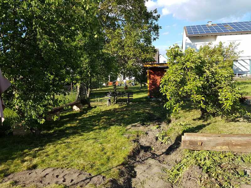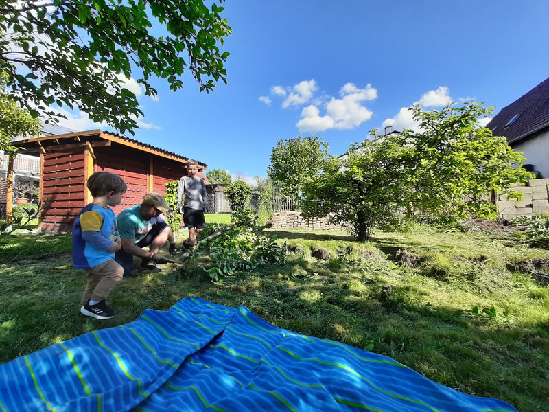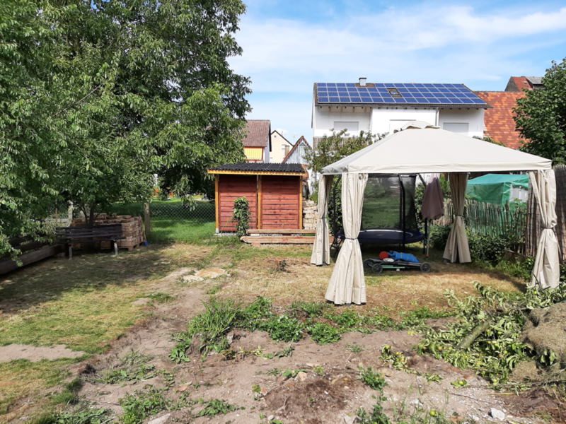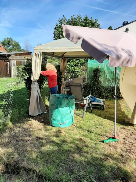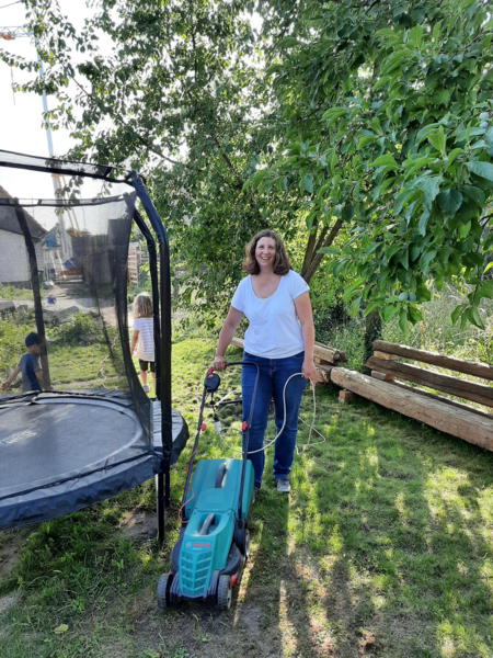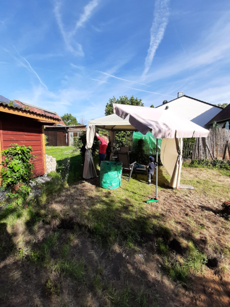 mit viel Sonnenschein, blauem und Himmel und dank der freundlichen Nachbarschaftshilfe mit einem frisch gemähten Rasen :-)