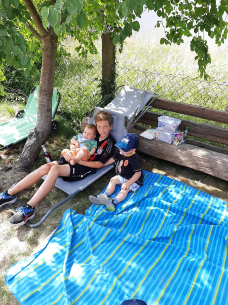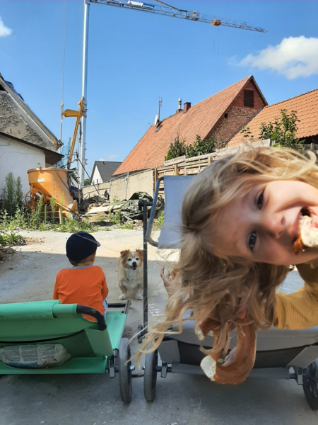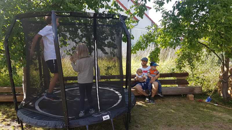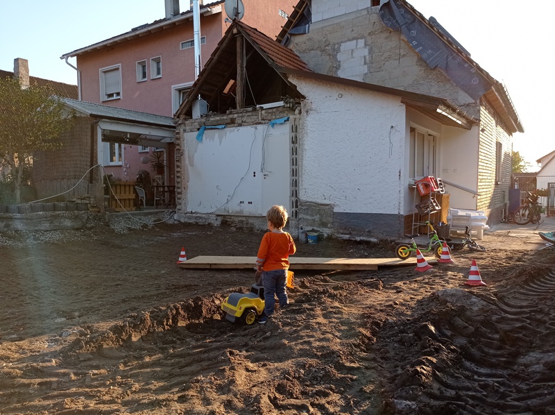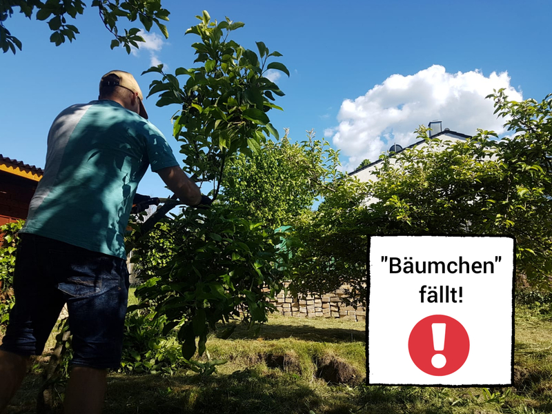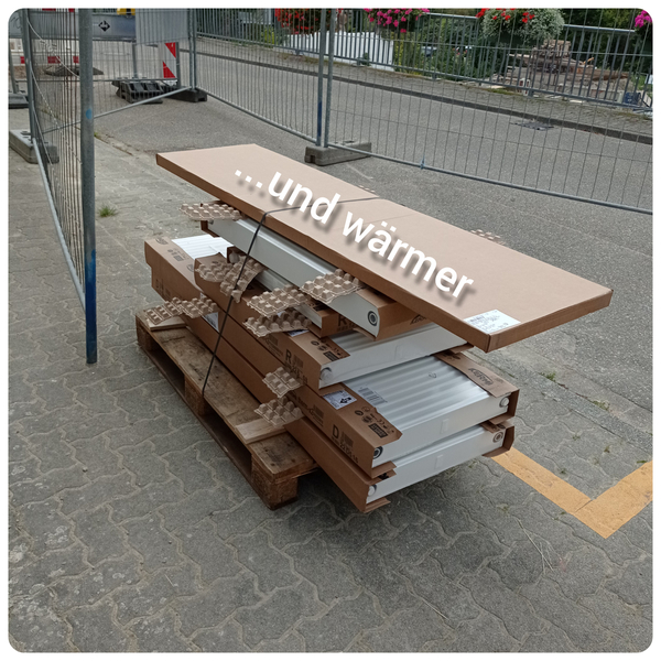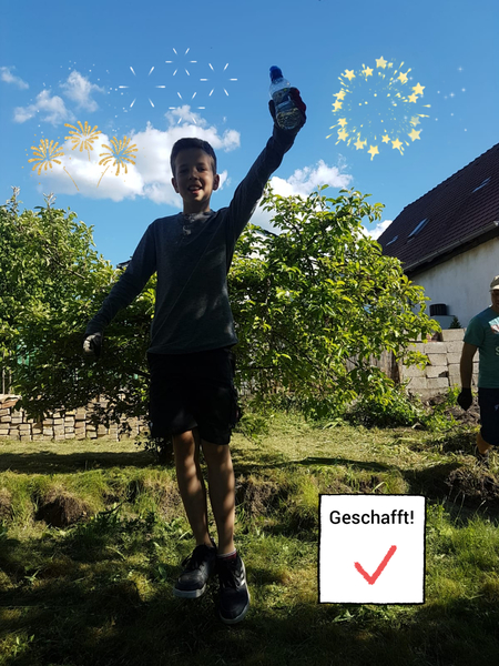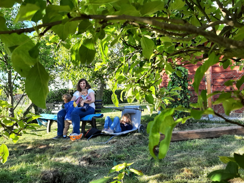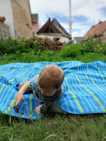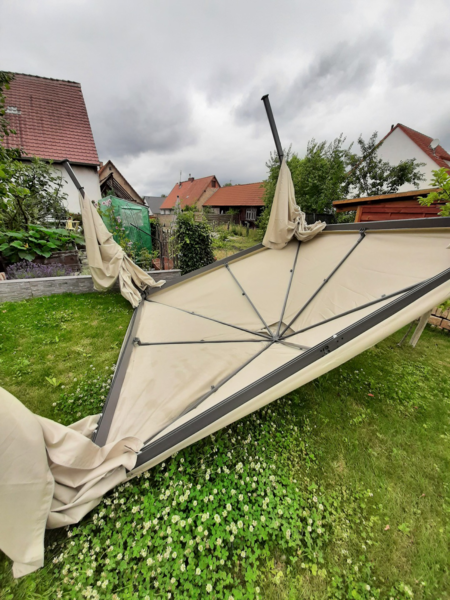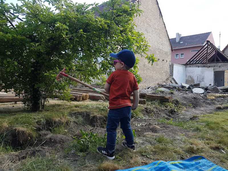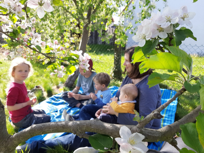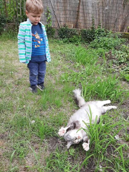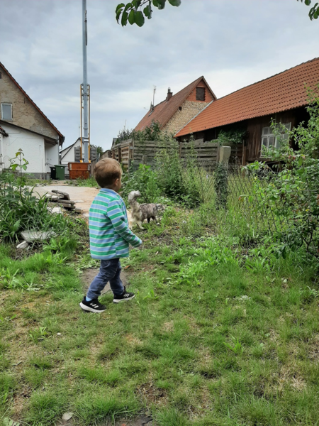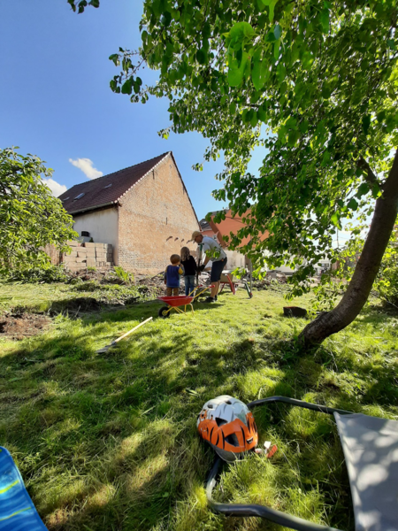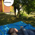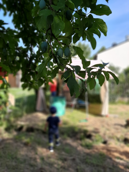 mit viel Sonnenschein, blauem und Himmel und dank der freundlichen Nachbarschaftshilfe mit einem frisch gemähten Rasen :-)