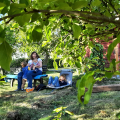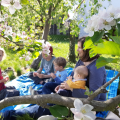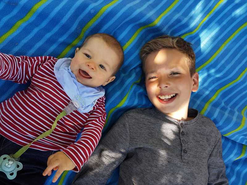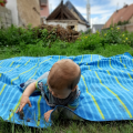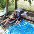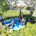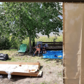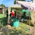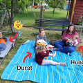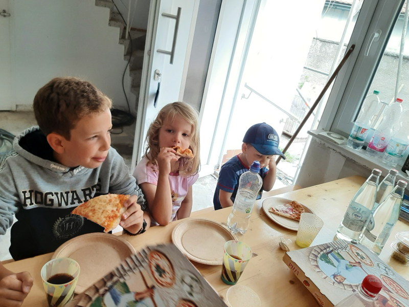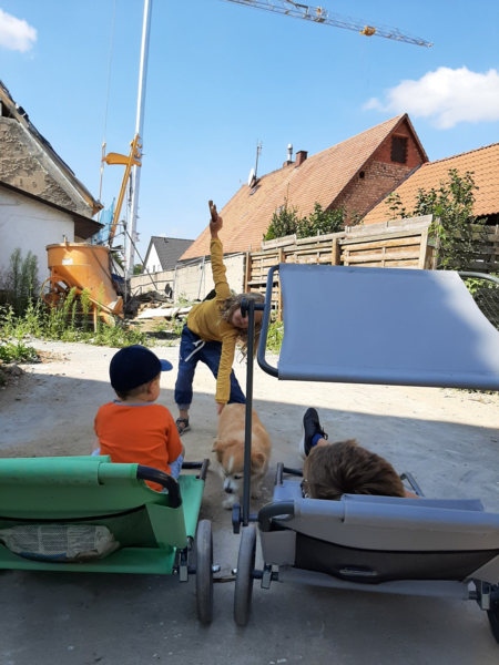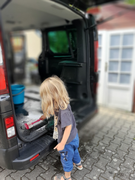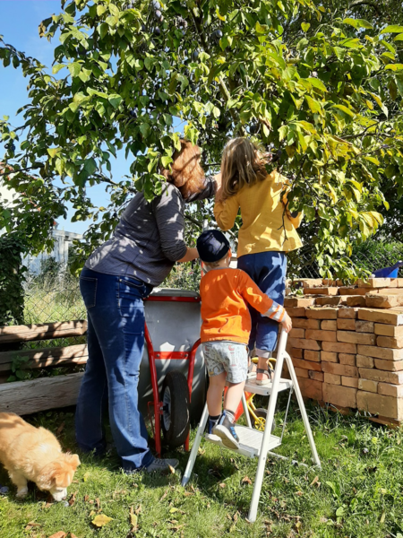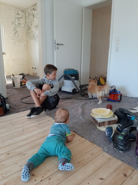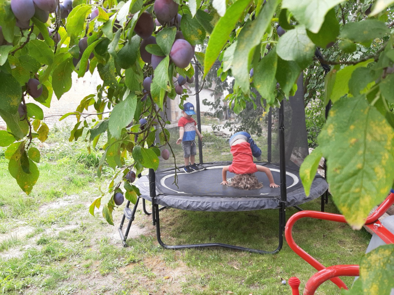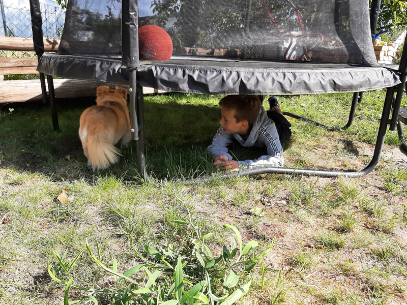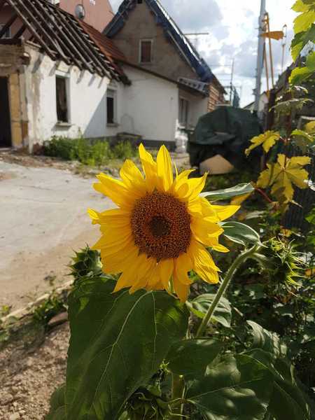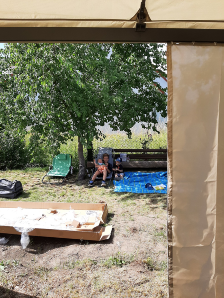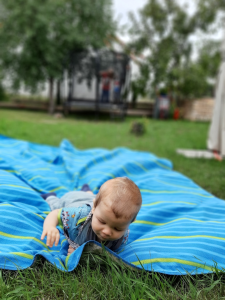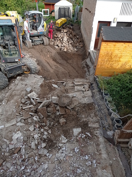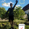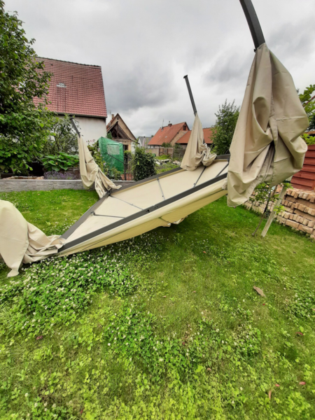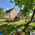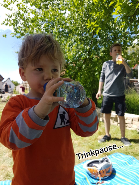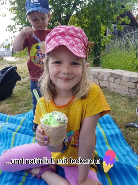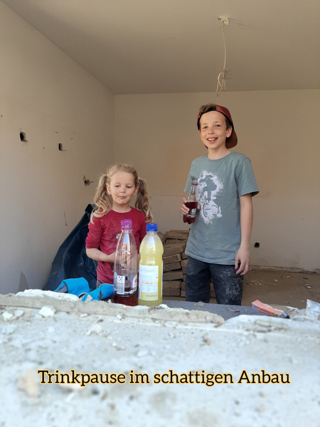 mit viel Sonnenschein, blauem und Himmel und dank der freundlichen Nachbarschaftshilfe mit einem frisch gemähten Rasen :-)